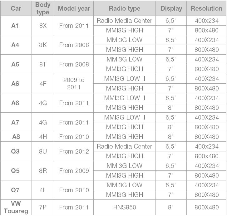 Compatibility table: (in case you have any doubt about your vehicle, please contact us)