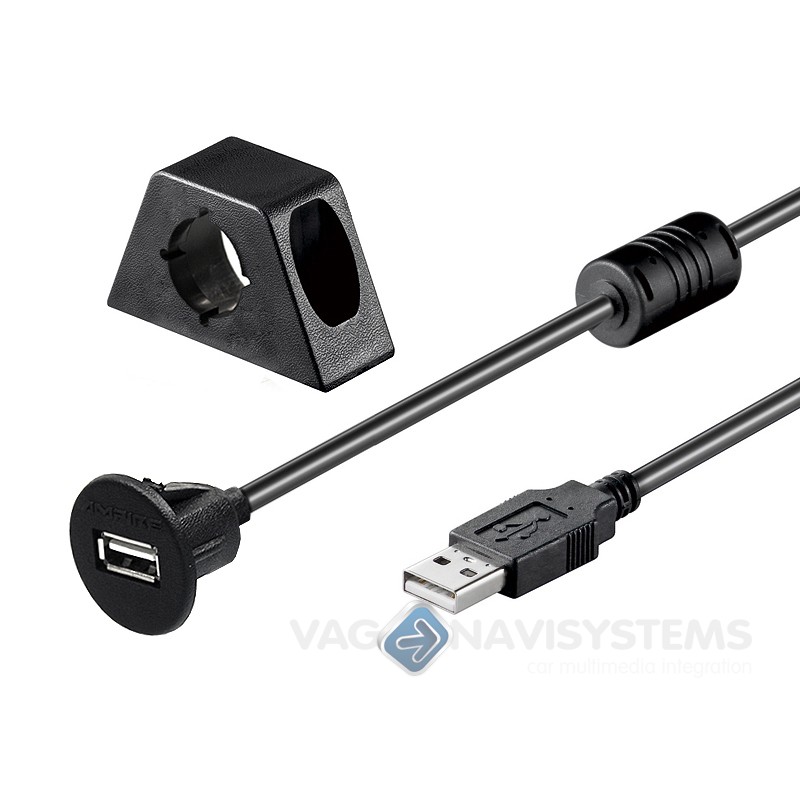 Cable de extensión USB 2m de longitud, con enchufe y soporte.