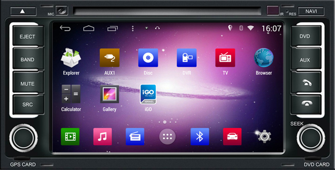 Menús de sistema Android 4.4.4, Radio AM y FM con RDS, Bluetooth 2.0 Manos libres, transferencia de música vía bluetooth A2DP, Mirror Link vía WI-FI, función Stand-by, Puerto USB, Lectores SD y mucho, mucho más...