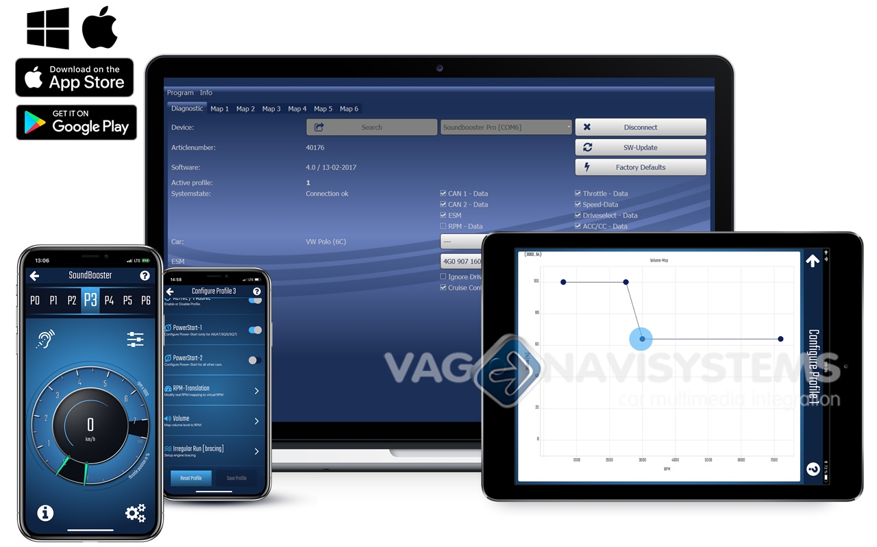 - Los kits Sound Booster PRO simulan el sonido de un potente motor (V6 / V8) o crean un nuevo y único sonido característico para su vehículo.