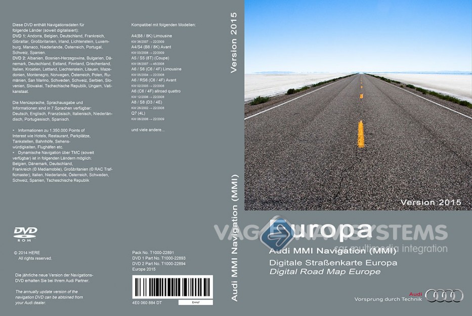 Nuevo software de navegación versión 2015 para Audi MMI 3G low II (7T2)